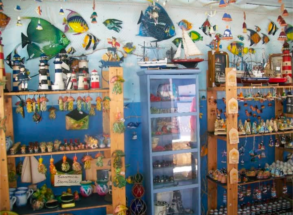 π A fare gli onori di casa c'è Angela — lombarda di origine, tremitese nel cuore. Lei e la sua famiglia hanno trasformato questa bottega in un luogo di culto per chi vuole portare con sé qualcosa di autentico dopo aver vissuto l'arcipelago.