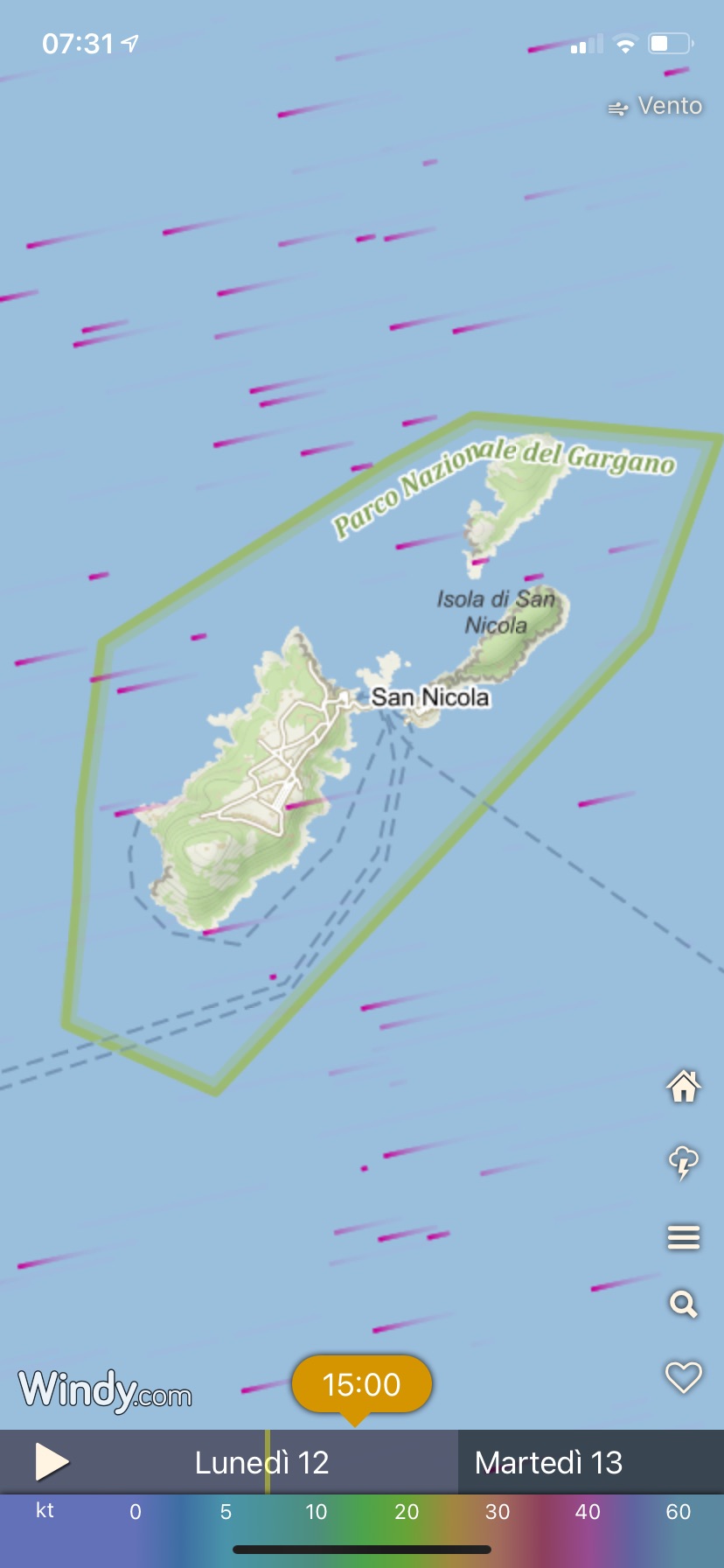 12/07 - giornata soleggiata, quasi totale assenza di vento in mattinata, verso le 13:00 si alzera vento moderato da Greco ( NE) che girerà durante il pomeriggio a levante (Est). Temperature in aumento durante il pomeriggio 🌡.