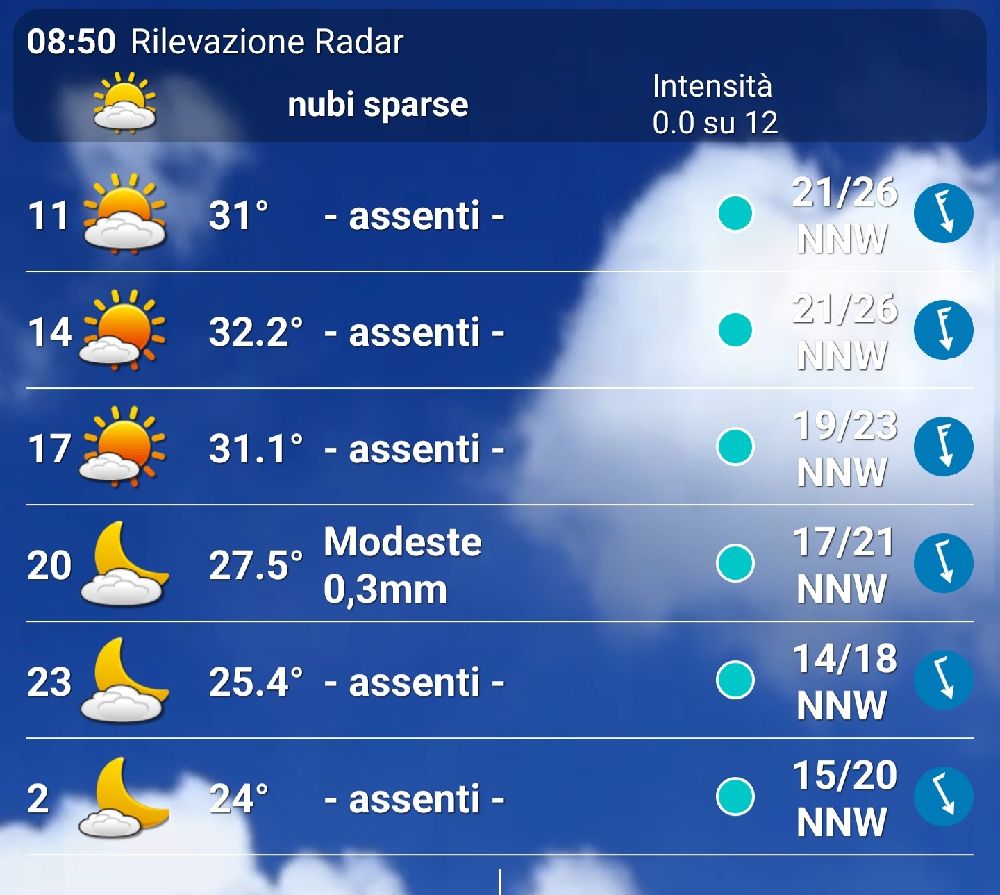 Giornata parzialmente nuvolosa con temperature tra i 24 e i 33°C.