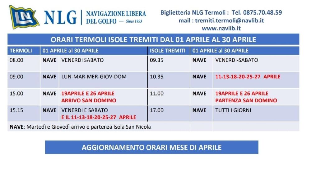 NLGNLGdi Giuseppe Matrella6 apr 2022, 14:17·Post pubblicoGli orari sono validi dal 1 aprile al 30 aprile 2022 per il collegamento effettuato dalla nave "Isola Di Capraia"5 reazioni2 commenti52CondividiMi piace e commenti completi nell'app TremitiNow.