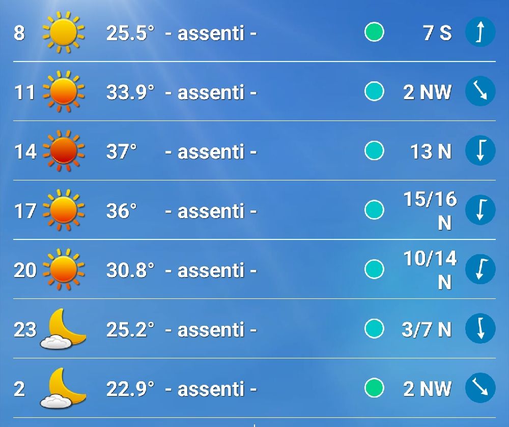 Ci attende una giornata calda con temperature tra i 22°C e i 38°C.