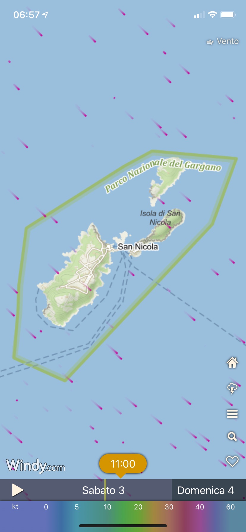 pochissimo vento da maestrale (NO) di mattina, un pochino di Greco-Levante (NE-E) da metà pomeriggio.