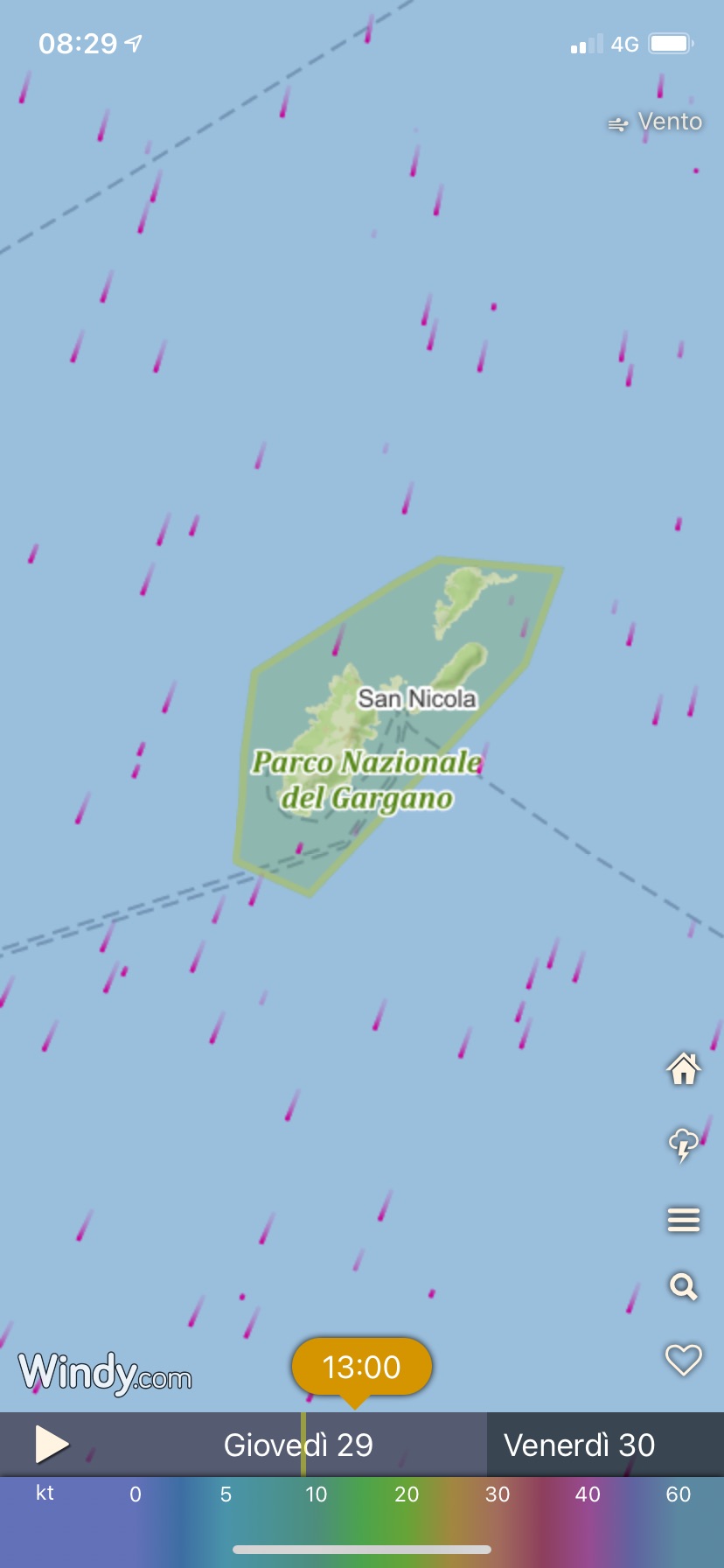 vento da ponente (ovest) dinmattina che girerà a greco (nord/est) nella parte centrale della giornata, poi dovrebbe perdere intensità.