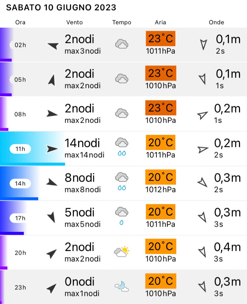 Cielo coperto per tutta la giornata e pioggia leggera nella prima parte della mattina, più intesa a fine mattinata, primo pomeriggio.