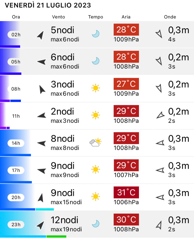 Giornata di sole, vento quasi assente durante la mattinata, invece da metà pomeriggio si alzerà un vento leggero da sud/ovest, che farà salire le temperature verso sera.