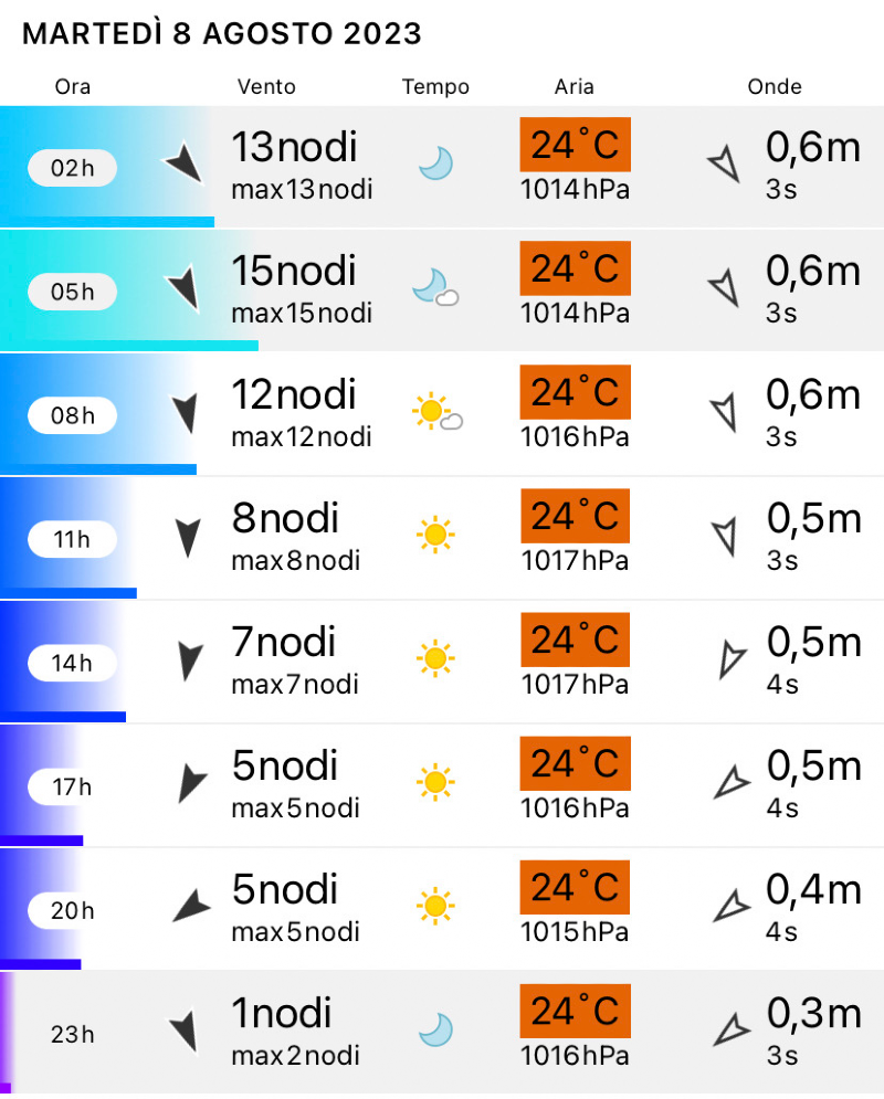 in mattinata ci sarà un leggero vento da nord che andrà scomparendo durante la mattinata.