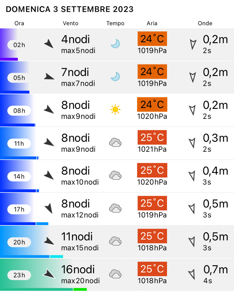 probabile cielo coperto bel pomeriggio, vento da nord/ovest leggero per tutta la giornata in rinforzo in serata.